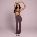 The flattering flare silhouette isn't just about style – it's built for function too, giving you unrestricted movement for dynamic workouts. Flatlock seams prevent chafing, while the high waistband provides core support to help you feel confident and secure. Sweat-wicking technology keeps you cool and dry, and the quick-drying material means you're ready for whatever comes next. Perfect for petite frames, these fudge-coloured leggings combine comfort, performance, and style in one versatile piece.