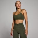 The MP Women's Tempo Sports Bra in forest green is your go-to for high-impact workouts that demand serious support. Built with fixed moulded cups and a supportive underbust band, it keeps everything secure so you can focus on smashing your goals without distraction.
